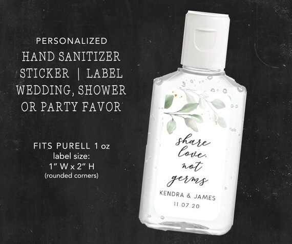 Personalized Hand Sanitizer Favors 30 ml (1 oz.) - Lowest Price Guarantee Clear hand sanitizer gel in a 30 ml (1 oz.) bottle; Contains 80% Ethanol (higher than the CDC's recommendations) Enriched with glycerin (a moisturizer) Clear bottle; Flip top opens for easy access to the hand sanitizer inside bottle; Size 2 1/4″ tall x 1 1/2″ wide x 3/4″ deep; Customer has to apply labels on bottles.