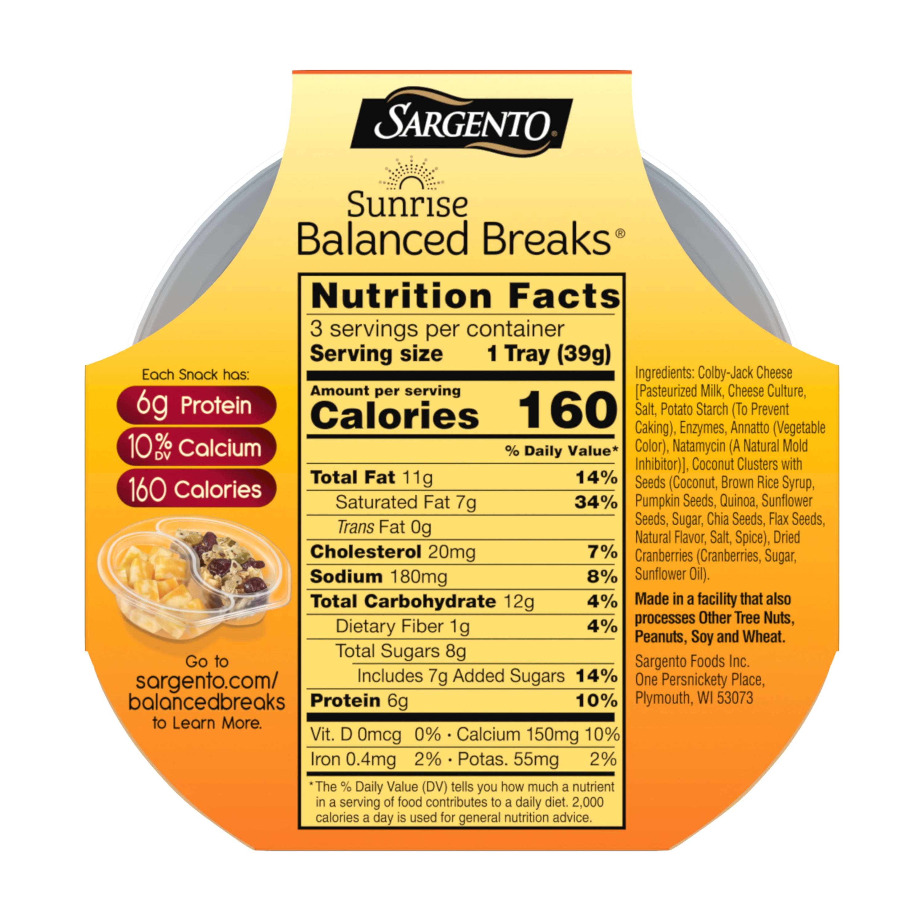 Sargento balanced breaks - Balanced breaks : calories, glucides et ... Trouvez les calories, les glucides et les contenus nutritionnels de cet aliment (Sargento balanced breaks - Balanced breaks) et de plus de 2 000 000 autres sur MyFitnessPal. Calories in Sargento Balanced Breaks, Natural Sharp White Cheddar ... 50 minutes Based on a 35 year old female who is 5'7" tall and weighs 144 lbs. Calorie Breakdown Where do the calories in Sargento Balanced Breaks, Natural Sharp White Cheddar Cheese with Cashews & Raisins come from? 15.2% 58.7% 26.1% Protein Total Fat Total Carbohydrate 180 cal