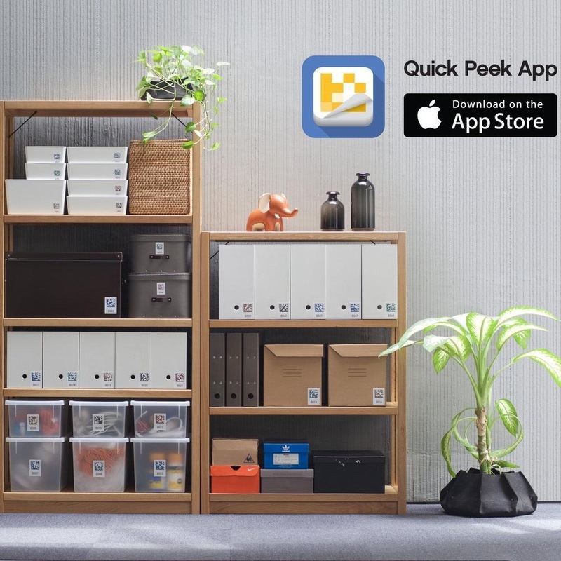 Quick Peek on the App Store The ultimate iOS smart storage system. Highly recommended for moving, spring-cleaning, home organizing, inventory for small businesses, storage, collections, tax documents, and more! Features: - iCloud & Dropbox Sync - Buy and print your own labels or buy pre-printed self-adhesive labels - Pre-printed labels come in a pack of 32