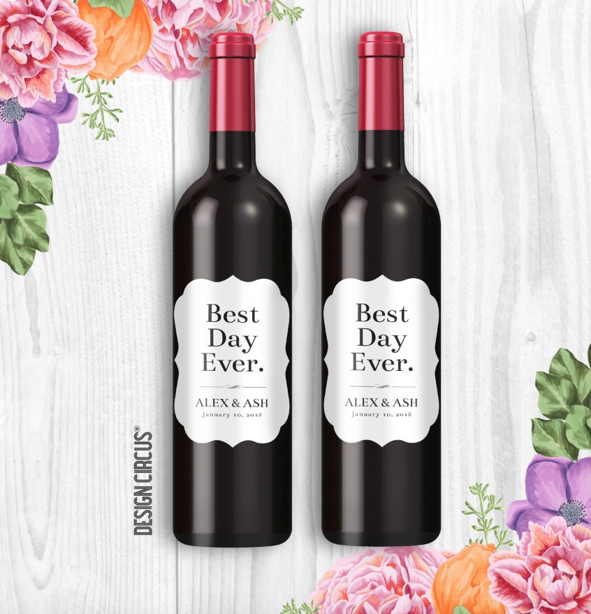 Custom Wedding Wine Bottle Labels, Best Day Ever, Modern & Simple Bottle Labels, Personalized Party Champagne Favors, Wine Bottle Sticker