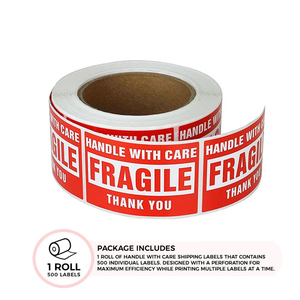 1Rol Stiker Label Tahan Air Dekoratif Label Barang Peringatan Harap Berhati-hati Terima Kasih Peringatan Label Stiker Barang Dekorasi