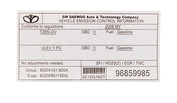 GM Genuine 96859985 Vehicle Emission Control Information ... GM Genuine 96859985 Vehicle Emission Control Information Label ... Replacement AC Climate Control Panel - Compatible with Chevy, Cadillac & GMC Vehicles ... PDF The Stickers You Need to Know! - OEHS Automotive Technology Info on the emissions label: Model Year Engine Size (in liters) Spark Plug Gap Emissions Control Type ... Vehicle Information Labels Author: GUY R. TIBERIO Created Date: 8/30/2013 10:16:17 AM ... Catalytic Converter Laws by State | Walker Exhaust Systems Jan 01, 2009 · A vehicle is a California Emissions Certified model if the Vehicle Emissions Control Information (VECI) label references: California, 50-State, CARB or ARB. This is vital information if regulations in your state mandate replacement converters be CARB compliant. Step 4 – Locate the Engine Family Number. Evaporative Emission Control (EVAP) System 101: The Basics Sep 25, 2020 · There’s too much information to cover in one article. Instead, we’ll focus on the most common EVAP system design, which primarily uses a fuel tank pressure sensor for system monitoring. Note: For information on the specific EVAP system in your vehicle, it’s a good idea to consult a repair manual or repair database. Parts of an EVAP System