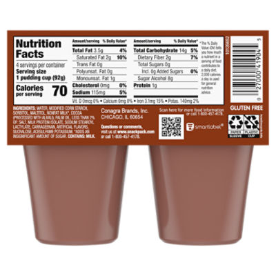 Snack Pack Pudding, Chocolate: Calories, Nutrition Analysis ...