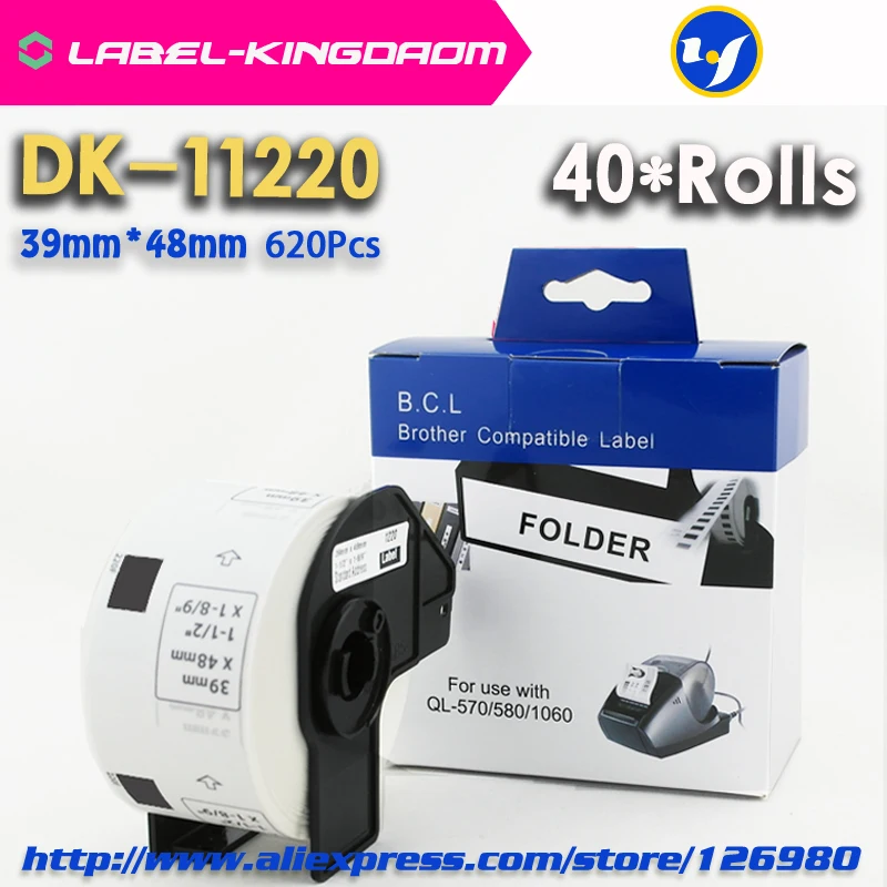 40 Rolls Generic DK-11220 Label 39*48mm 620Pcs Compatible for Brother Label Printer QL-570/700/720 All Come With Plastic Holder