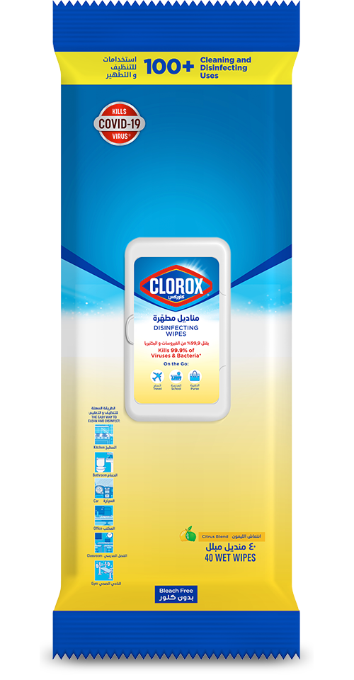 Clorox Disinfecting Wipes Bleach Free Cleaning Wipes Clorox Disinfecting Wipes clean, disinfect, deodorize and remove allergens for 5x cleaning power* and leave a lemon scent. Disinfecting Wipes clean and disinfect with antibacterial power that kills 99.9% of viruses and bacteria that can live on surfaces, including COVID-19* Virus, staph, E. coli, MRSA, salmonella, strep and Kleb.