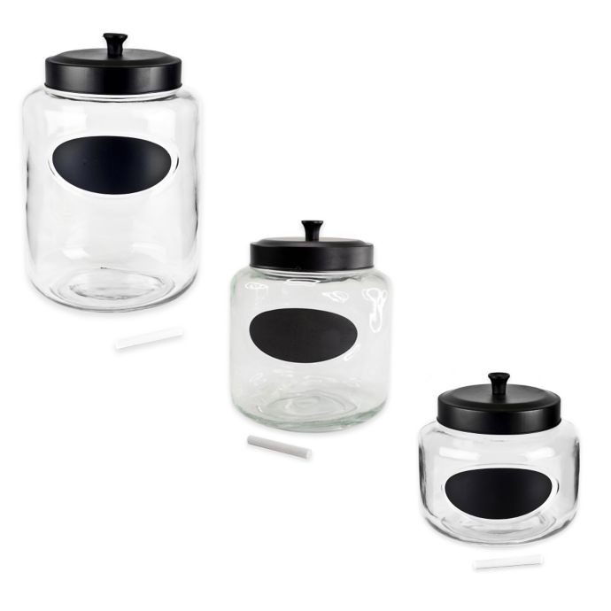 Bormioli Hermetic Glass Jars with Chalkboard Labels Product Information. Our Hermetic Glass Jars with Chalkboard Labels are a creative and versatile new take on a traditional kitchen staple. Use them for storing dry foods such as rice, coffee or pasta - they're airtight so food will stay fresh. The chalkboard labels on the fronts let you identify contents and update them easily. DIY: Chalkboard Label Jars - cremedelacraft.com • Glass jar with lid • Chalkboard paint (you can also make your own with this tutorial) • White spray paint • Spray paint for the lid (color of your choice) • Piece of cardstock paper to cut out the label • Paintbrush • Scissors • Pencil • Tacky glue (I used a tape runner, but recommend tacky glue for a more firm hold) • Chalk Blue Harbor Glass Storage Jar with Chalkboard Label Perfect for the kitchen, art room and bath, they're big enough for a multitude of items Write names or dates on chalkboard labels for easy identification Tight fitting black steel lid keeps things fresh and pest-free Includes 2-pieces of chalk Glass and metal Hand wash 108 oz. jar measures 7.5" L x 7.5" W x 7.75" H