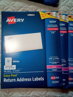 Avery Return Address Labels, Laser/Inkjet, 2/3 x 1-3/4-Inches, White (18294) Guaranteed to stick and stay: Avery labels with Ultrahold permanent adhesive hold fast to envelopes, cardboard, paper, plastic, glass, tin and metal; great for mailing, filing, organizing items, packaging and pricing products