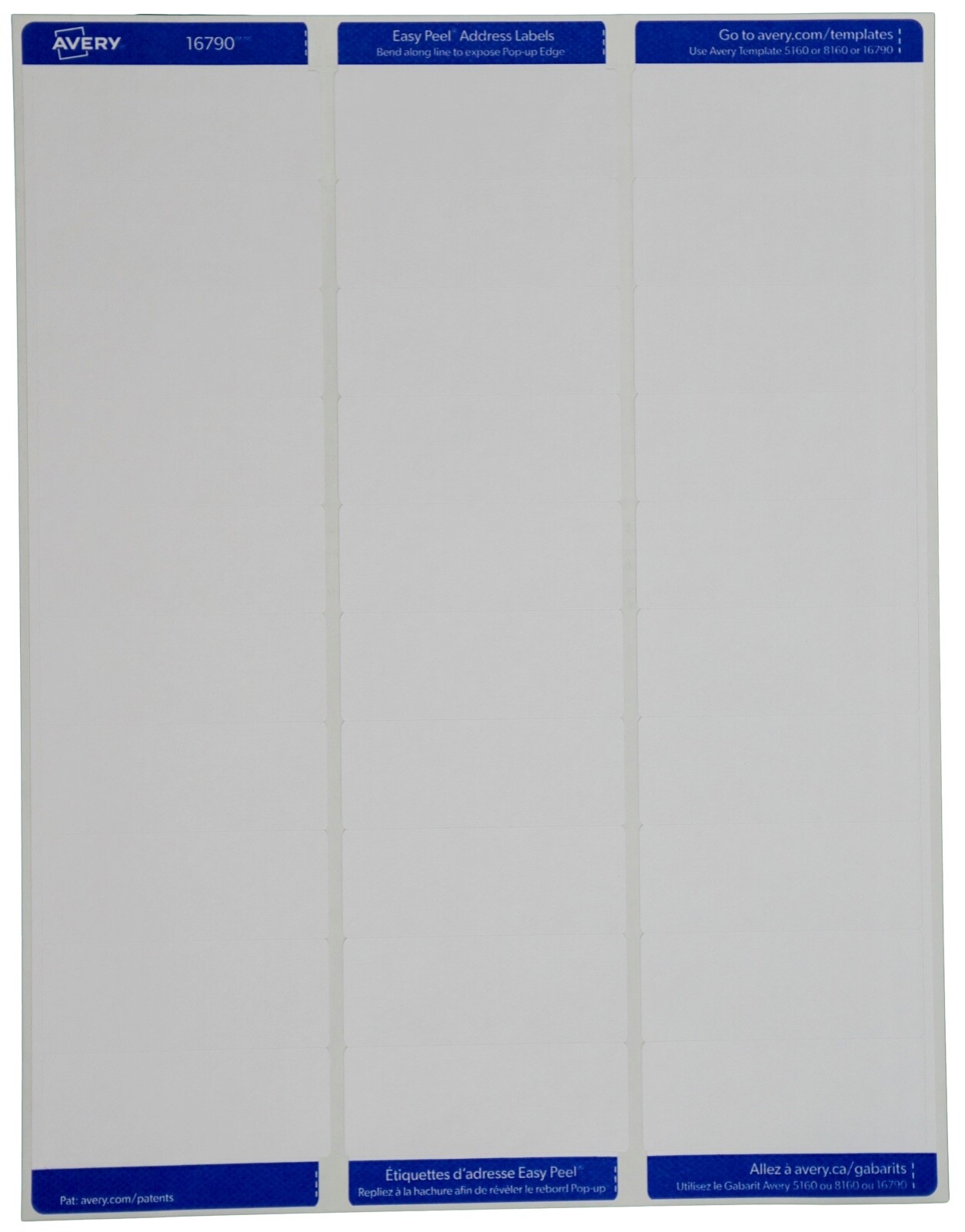 Amazon.com : Avery Easy Peel Address Labels for Laser ... Jul 07, 2004 · Amazon.com : Avery Easy Peel Address Labels for Laser Printers 1" x 4", Box of 2,000 (5161) : Address Labels : Office Products Avery At Avery.com, you'll find office supplies and products such as labels, dividers, notetabs and binders. You can also browse our website to find ready-made templates ... Avery 8160 Address Labels - Office Depot Take charge of all your mailing shipping identification and organization jobs with Avery address labels. Avery bright white labels blend better than basic labels on white envelopes. Avery labels provide better adhesion than basic labels with its Ultrahold permanent adhesive that sticks and stays guaranteed.