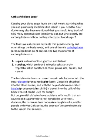 What does other carbs mean. en.wikipedia.org › wiki › DiabetesDiabetes - Wikipedia Other complications include an impaired counterregulatory response to low blood sugar, infection, gastroparesis (which leads to erratic absorption of dietary carbohydrates), and endocrinopathies (e.g., Addison's disease). These phenomena are believed to occur no more frequently than in 1% to 2% of persons with type 1 diabetes. › healthy-lifestyle › nutritionCarbohydrates: How carbs fit into a healthy diet - Mayo Clinic Mar 22, 2022 · Carbohydrates often get a bad rap, especially when it comes to weight gain. But carbohydrates, often called carbs, aren't all bad. Because of their many health benefits, carbs have a rightful place in the diet. In fact, the body needs carbs to work well. But some carbs can be better for you than others. LABEL READING: CARBOHYDRATES AND SUGARS Jun 12, 2017 ... When looking at the nutrition facts table, the number of total carbohydrates means the sum of sugar, starches and dietary fiber. Although all ... What Are the Definitions of Total Carbohydrates & Other ... When reading a nutrition label, the line "total carbohydrates" includes all types of carbohydrate found in the food or beverage. Total carbohydrates consist ...