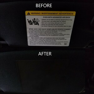 41 visor airbag warning overlay decals