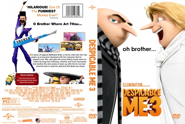 Despicable Me 3 DVD Cover - #486050 - Movie Insider Despicable Me 3 (2017) DVD Cover Despicable Me 3 Plot . Continuing adventures of Gru, Lucy, and their adorable daughters — Margo, Edith and Agnes — and the Minions. Like this Despicable Me 3 DVD Cover—Share It! Share on Facebook Tweet Post to Tumblr Pin it Submit to Reddit Send email. Despicable Me 3 (2017) : Front | Blu-Ray Covers - Cover Century CD Covers; DVD Covers; Blu-Ray Covers; Console covers. Genesis covers; NES covers; Nintendo 64 covers; Nintendo Switch covers; Playstation 4 covers; Sega CD covers; Super Ninentendo covers; XBOX covers; Wii covers; Wii U covers; PC covers; Handheld covers. 3DS covers; Gameboy covers; Gameboy Advance covers; Gameboy Color covers; Nintendo DS ...
