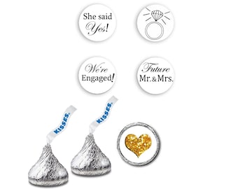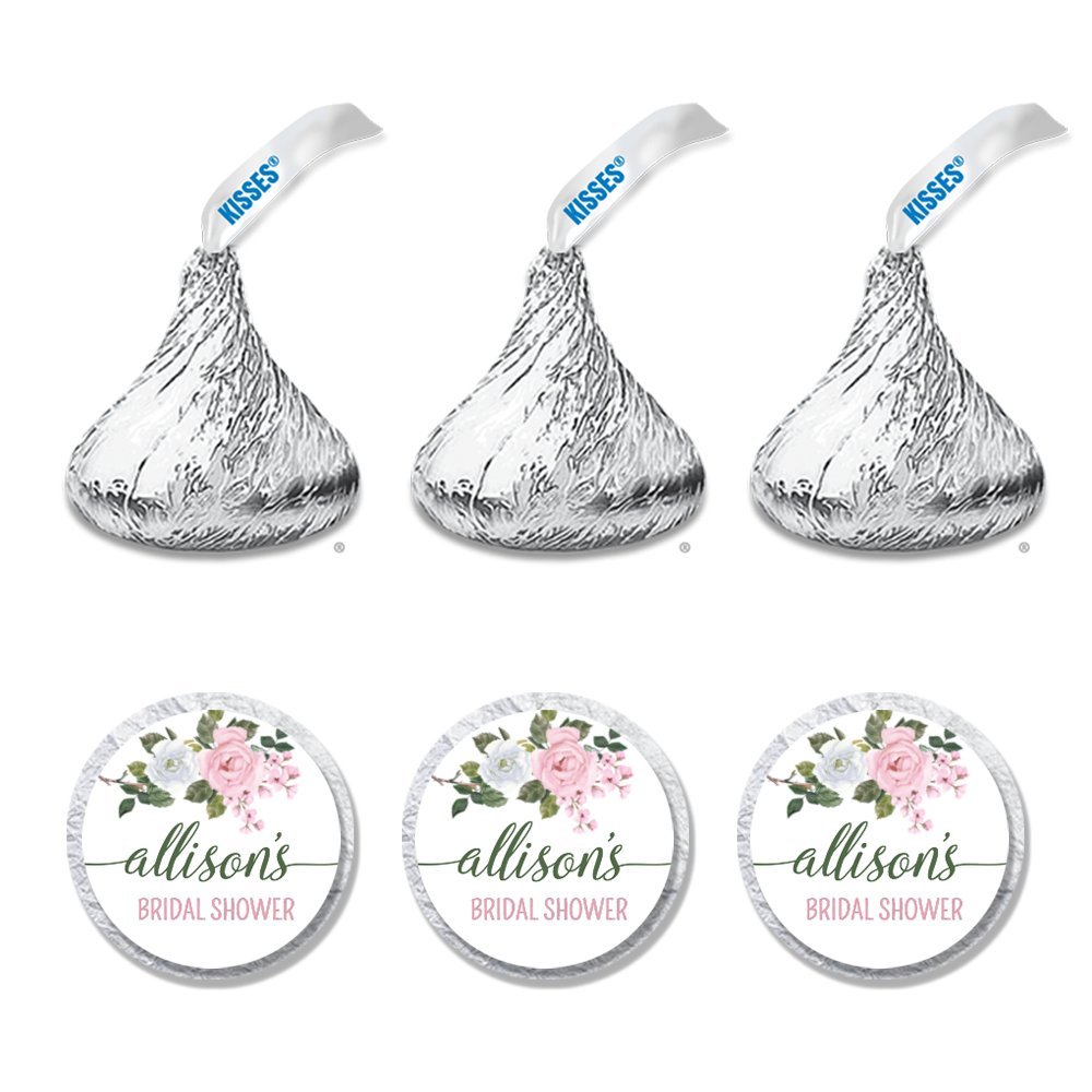 216 Personalized Bridal Shower Candy Kiss Stickers - Rose Themed Party Favor Stickers - Perfectly Fits Hershey Kiss Candies (HK104)