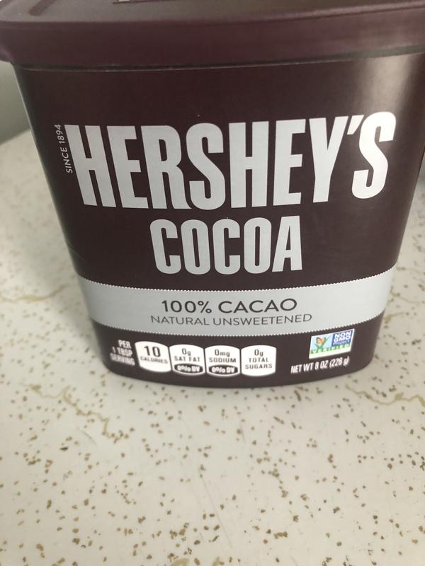Hershey's Naturally Unsweetened Cocoa Baking Cocoa Container Hershey's Naturally Unsweetened Cocoa Baking Cocoa Container ; Cholesterol 0mg, 0% ; Sodium 0mg, 0% ; Potassium 75mg, 2% ; Total Carbohydrate 3g, 1% ...