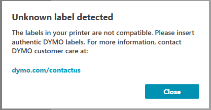 Dymo unknown label detected