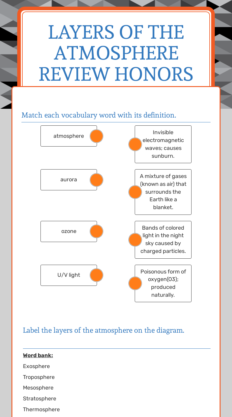 Label the layers of the atmosphere worksheet
