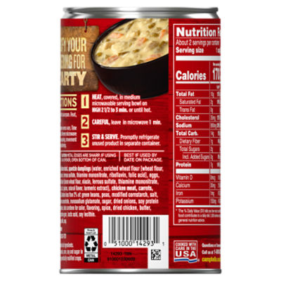 Campbell's cream of chicken soup label. Campbell's Condensed Cream of Mushroom Soup, 10.5 Ounce Can ... Campbell’s Cream of Mushroom Soup is made with no preservatives, so it’s food you can feel good about - let’s get ready to create. M’m! M’m! Good!From Chicken Noodle to Tomato and everything in between, Campbell’s makes delicious soups with quality, farm-grown ingredients in flavors you and your family know and love. 20 Best & Worst Canned Chicken Noodle Soup Brands - Eat This … Web11.10.2021 · Campbell's Chunky Soup Creamy Chicken and Dumplings Soup. Courtesy of Campbell's. Nutrition: 160 calories, 8 g fat, 2 g saturated fat, 890 mg sodium, 16 g carbs, 3 g fiber, 3 g sugar, 6 g protein. Ingredients We Don't Love: Monosodium Glutamate (MSG), Sugar, Sodium Phosphate, Soy Protein Isolate. Overflowing with MSG, sodium … Campbell's Soup Cans - Wikipedia The earliest soup can painting seems to be Campbell's Soup Can (Tomato Rice), a 1961 ink, tempera, crayon, and oil canvas. In many of the works, including the original series, Warhol drastically simplified the gold medallion that appears on Campbell's Soup cans by replacing the paired allegorical figures with a flat yellow disk. Campbell's Condensed Chicken Won Ton Soup - 10.5oz : Target Join Campbell’s in the kitchen by customizing this soup with red bell peppers, or pair it with stir-fried vegetables with a splash of soy sauce. Campbell’s Chicken Wonton Soup starts with savory chicken stock and tender chicken wontons. The end result is a soul-warming chicken wonton soup that brings a smile with every spoonful.
