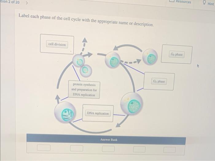 Label each phase of the cell cycle with the appropriate name or description.. Chapter 2 HW Flashcards | Quizlet Identify each stage of M phase. Intracellular components can be labeled with a fluorophore, and the dynamic movements within the cell can be visualized. Arrange the images of the stages of cell division in order from interphase to cytokinesis. Cell division by mitosis is a mechanism of asexual cell replication. Genetics: Chapter 2 Homework Flashcards | Quizlet Place the steps of the prokaryotic cell cycle in order. 1. prokaryotic chromosome attaches to the plasma membrane 2. prokaryote chromosome replicates 3. cell elongates, pulling each chromosome to a different end of the cell 4. plasma membrane and cell wall grow inward and divide the cell 5. two genetically identical daughter cells are produced Phases of the cell cycle (article) | Khan Academy The cell cycle is a cycle, rather than a linear pathway, because at the end of each go-round, the two daughter cells can start the exact same process over again from the beginning. In eukaryotic cells, or cells with a nucleus, the stages of the cell cycle are divided into two major phases: interphase and the mitotic (M) phase.