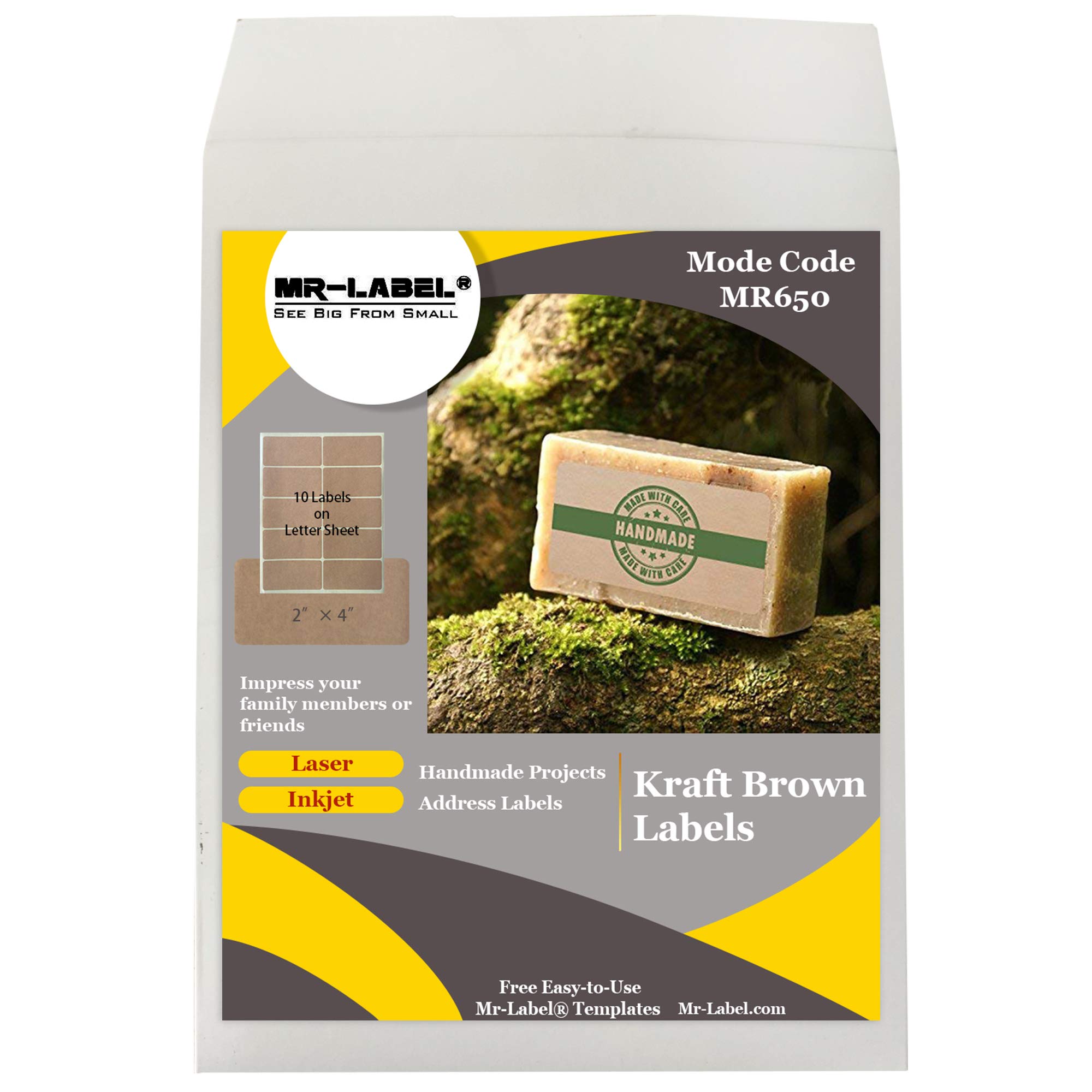 Mr-Label 1" x 2-5/8" Kraft Brown Rectangle Labels – Permanent Adhesive Blank Labels for Inkjet & Laser Printer – for Envelope | Gift Bag | Bottle | ...